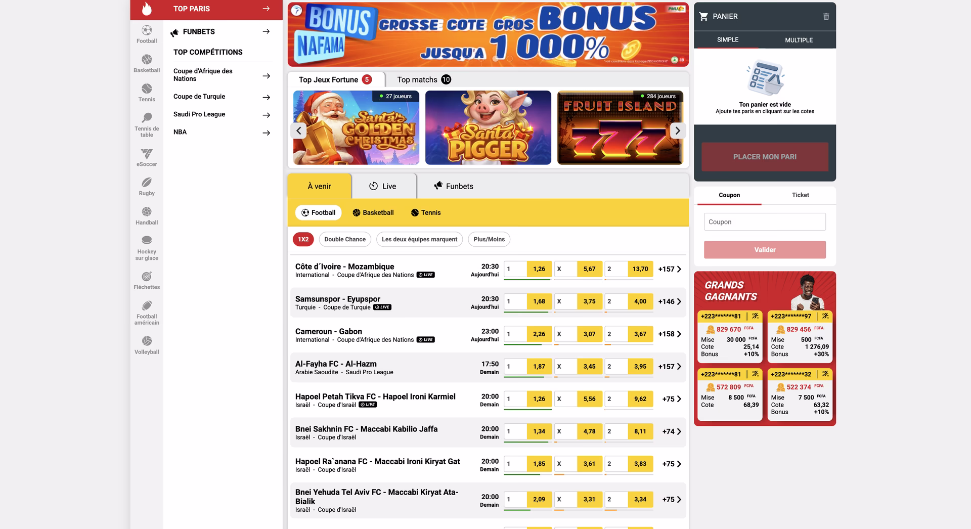 Offre de paris sportifs sur Malibet Mali